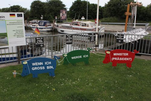 Wir lernten etwas über die BIHZ, die Bürgerinitiative Hafen-Zukunft, die um das Überleben des kleinen Friedrichsköger Hafen kämpft, gegen eine Landesregierung – rot-grüne Vollpfosten -, die offensichtlich ebenso wenig Interesse an einer Kommunikation mit den ansässigen Unternehmern (ich erinnere mich an 37 oder 38 betroffene Unternehmen, 170 Arbeitsplätze, die in Gefahr sind) und Bürgern hat, wie sie auch nicht mit wirklich konkreten Informationen und Argumenten rüberkommt. Ich habe mich spontan entschlossen, mich einer Interessensinitiative anzuschließen, die den Erhalt des kleinen Hafens unterstützen will. (Ja, ich wohne in Murnau in Oberbayern, Landkreis Garmisch-Partenkirchen. Und? Wenn jeder immer nur in seine eigene Arschfalte schaut, sieht er sein ganzes Leben immer nur die gleiche Scheiße!)
