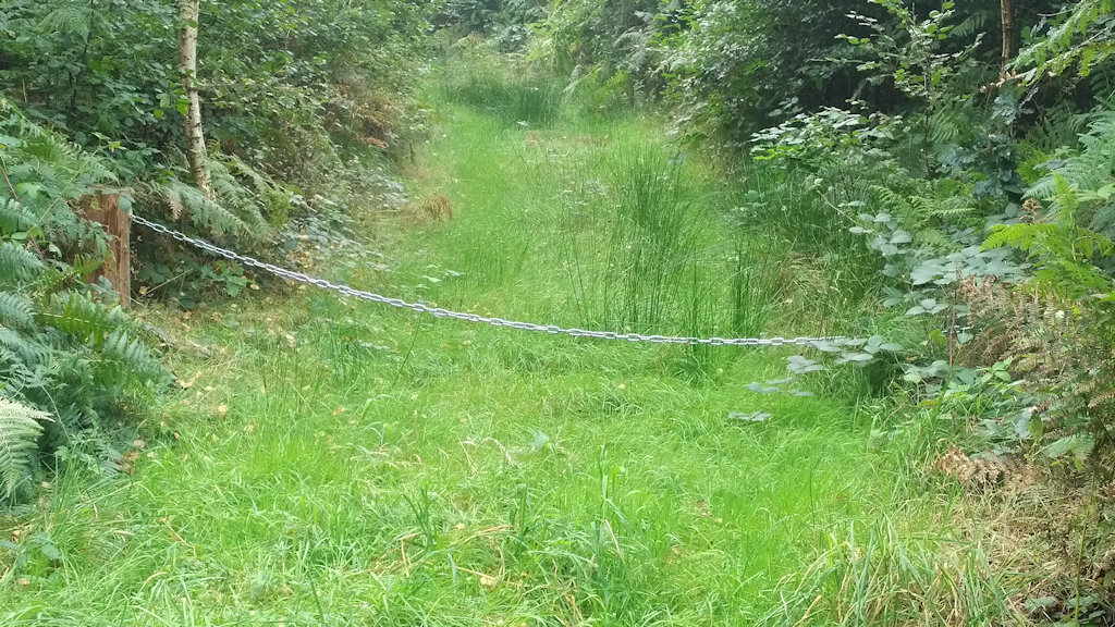 Irgendwann tauchte eines der typischen, schwarz-gelben »Privat«-Schilder auf. Wozu auch immer. Ich habe in all den Jahren nur einmal einen Wagen dort stehen sehen, einen ScheißUV von einem Pilzsammler mit Hund, der aber sonst weiter im Wald parkte. Der Weg neben diesem Platz führt in den Wald, gabelt sich und endet an beiden Enden als Sackweg. Ein Trampelpfad verbindet beide Enden miteinander, sodass man mit einem Hund eine Runde gehen kann.