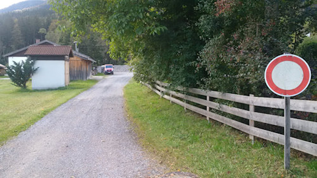 Fragen bleiben. Der Weg ist keine Sackgasse. Wozu aber dieser Weg, wenn man ihn nicht benutzen darf. Dass er für Fahrzeuge geeignet ist, erkennt man an der Breite und an der Oberflächenstruktur. Und an dem Fahrzeug im Hintergrund.