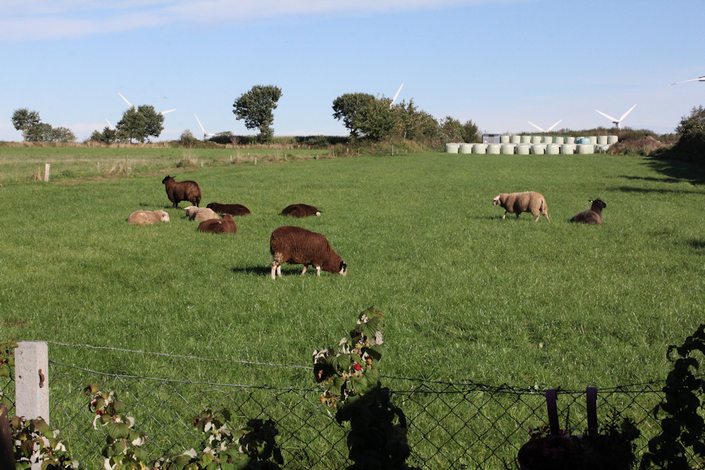 Ja. Alte Spruchkamelle. Wenn man es genau nimmt. Aber es sind keine Männer, sondern Schafe. Und sie sind neu. Gestern fräste der Nachbar mit Traktor und Mäher rundherum um die Wiese einen Streifen Gras – ich vermute, um die Schafe dazu zu verleiten, in der Wiesenmitte mit ihrer Rasenpflege zu beginnen –, und nach langen, öden Monaten einer nackten, unbelebten Wiese sind sie wieder da: Schafe, ganz neu, denn wir kennen sie noch nicht und sie kennen uns auch noch nicht, aber das werden wir mit getrocknetem Brot peu à peu ändern. Wie jedes Mal.