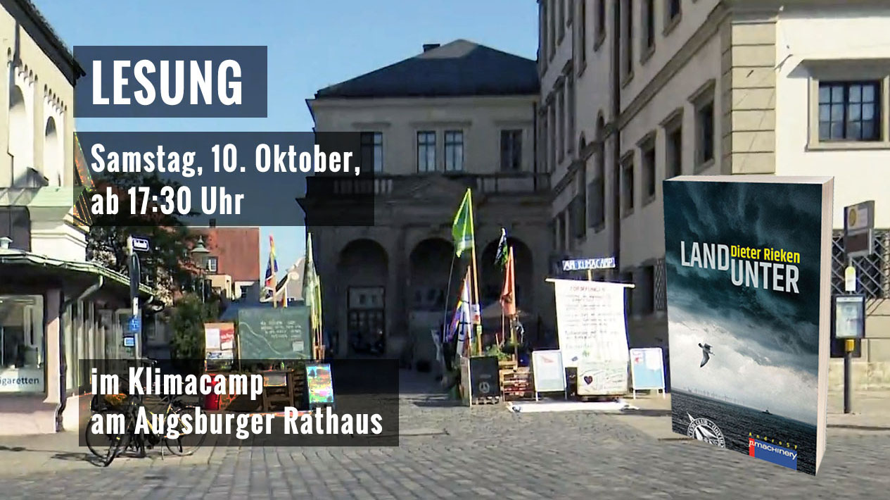 Am Samstag, den 10.10., bin ich ins Augsburger Klimacamp eingeladen, um aus meinen Roman »Land unter« zu lesen. Die Lesung ist öffentlich. Wer Interesse hat, ist herzlich eingeladen.
