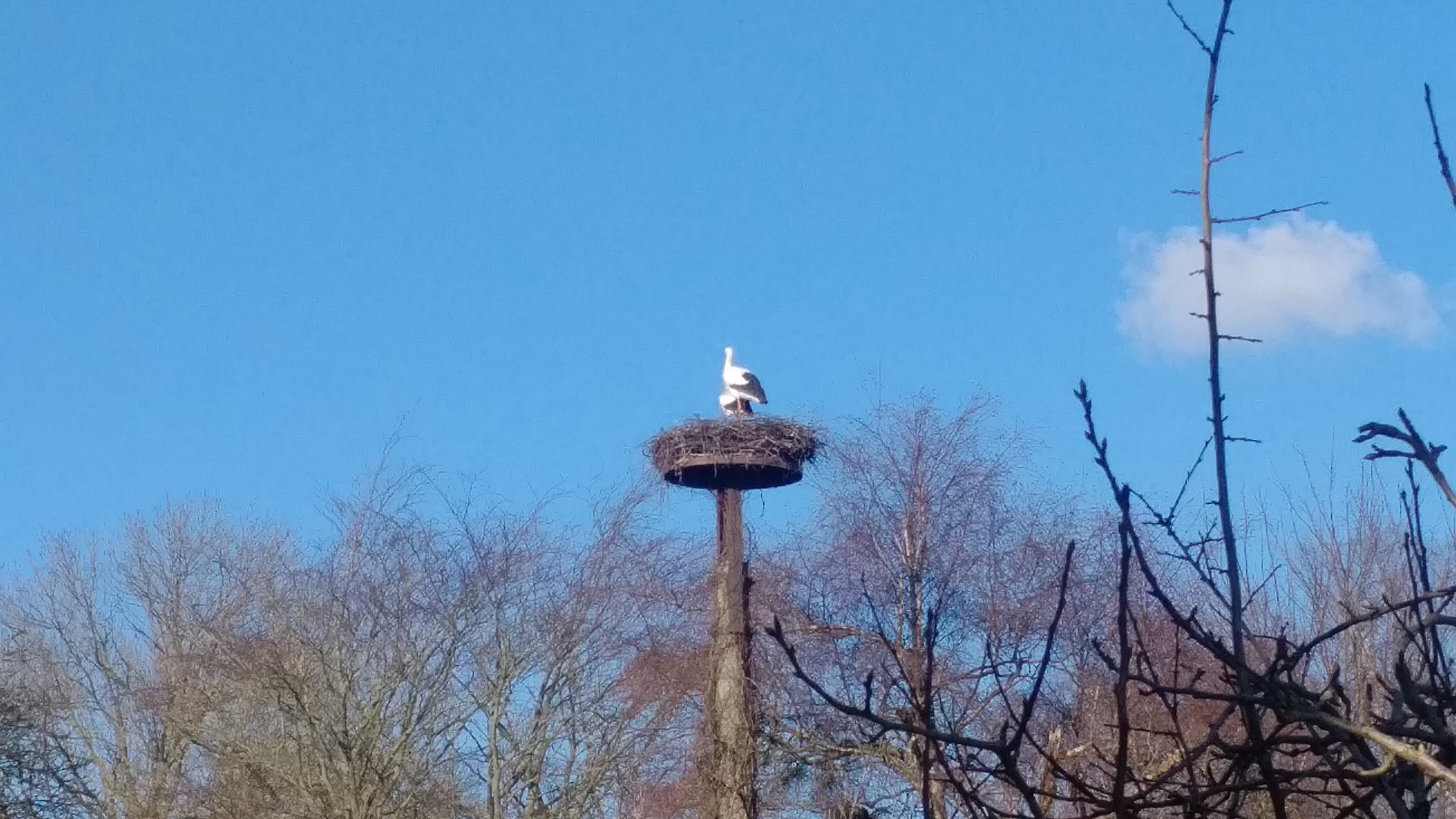 Krokusse in weiß, gelb und blauviolett, Schneeglöckchen … die Temperaturen sind noch nicht sehr frühlingshaft hier in Nordfriesland, aber angeblich ist der Frühling da, wenn die ersten Störche ihr Domizil bezogen haben: