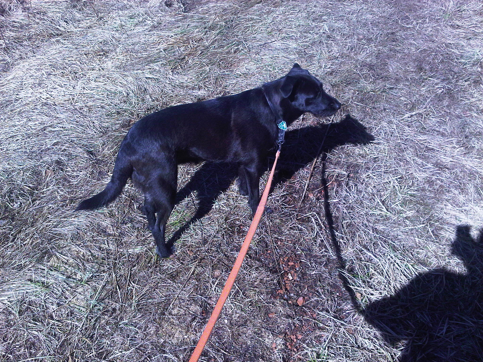 Im Februar lag dort der Schnee so hoch, dass der Hund bis zur Nasenspitze darin verschwinden konnte.