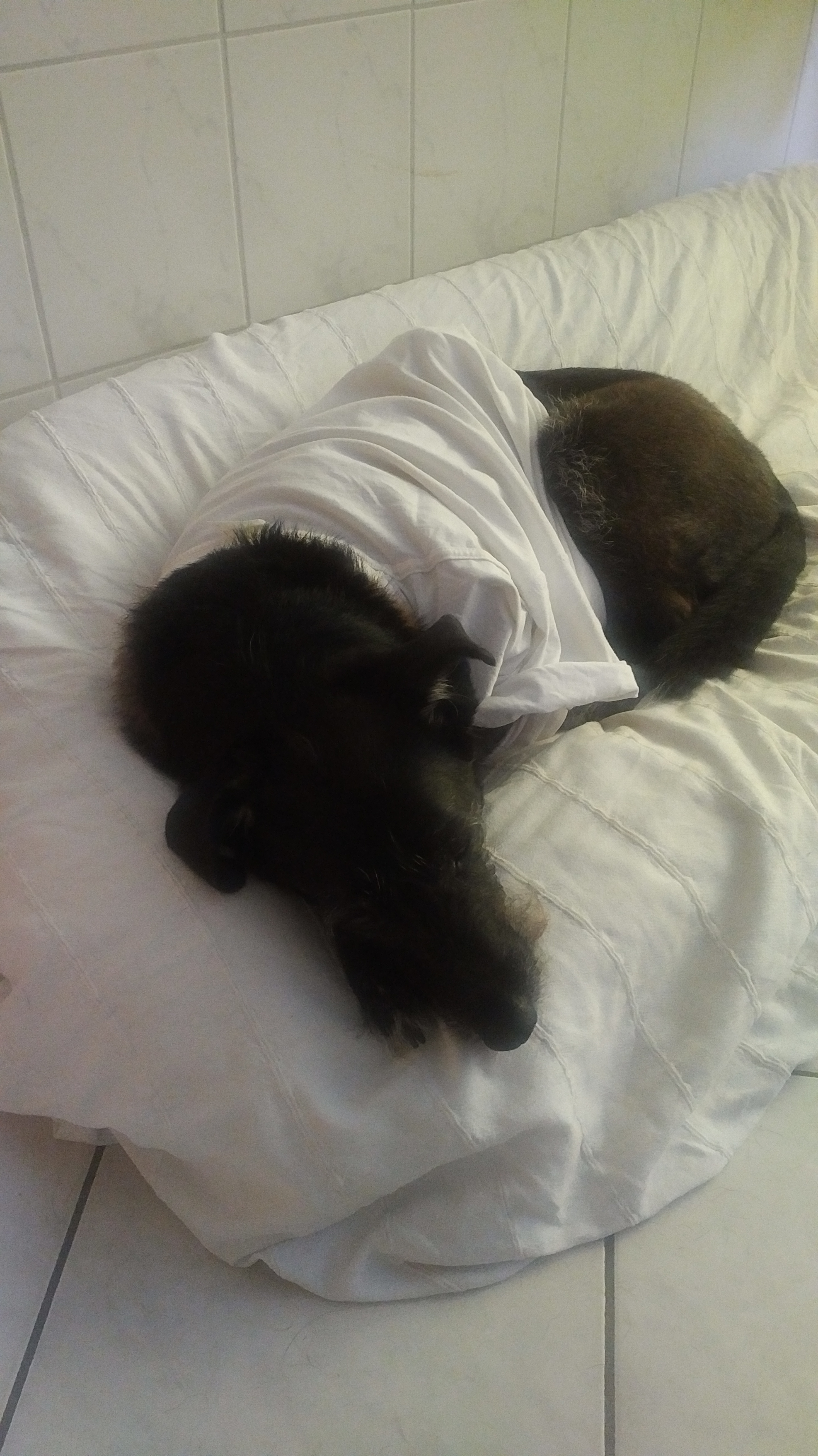 Nach dem Gassigang gab’s ein altes T-Shirt (von meinem letzten Arbeitgeber, das ich sowieso nicht mehr trage) als Alternative: