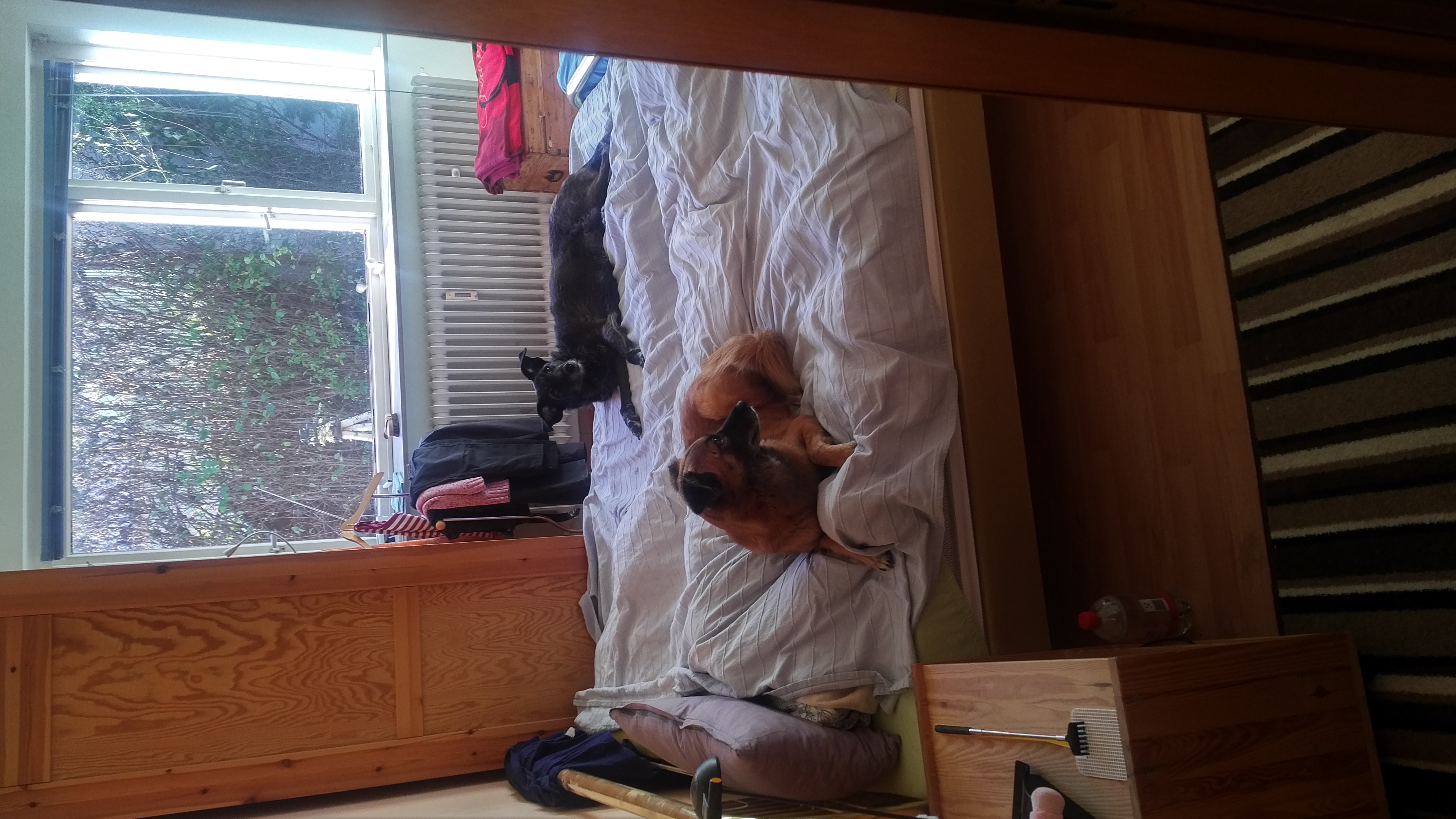 Sessel, Sofa und eben auch unser Ehebett – alles keine Verbotszonen. Und sie werden gerne frequentiert – das Ehebett vor allem auch von Susi; Kim lässt sich dort nur blicken, wenn ihre Menschen auch anwesend sind –, obwohl jede Menge hundegerechte Liegeplätze vorhanden sind.